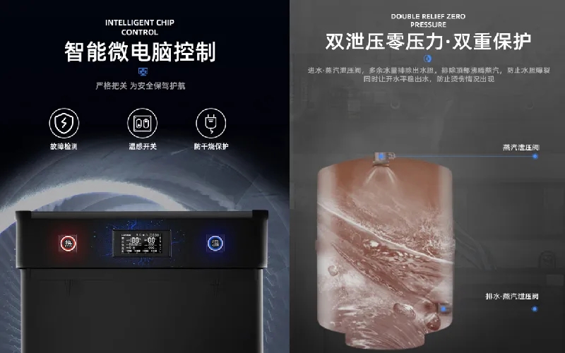 智能微電腦控制,自動(dòng)對(duì)設(shè)備進(jìn)行檢測(cè),發(fā)現(xiàn)故障立即報(bào)警;雙泄壓雙重保護(hù),防止水爆裂;充分考慮學(xué)生在實(shí)際使用中的情況,還加入更多的安全設(shè)計(jì),讓學(xué)生們?cè)谑褂眠^程中更安全,讓老師、家長(zhǎng)們更放心。