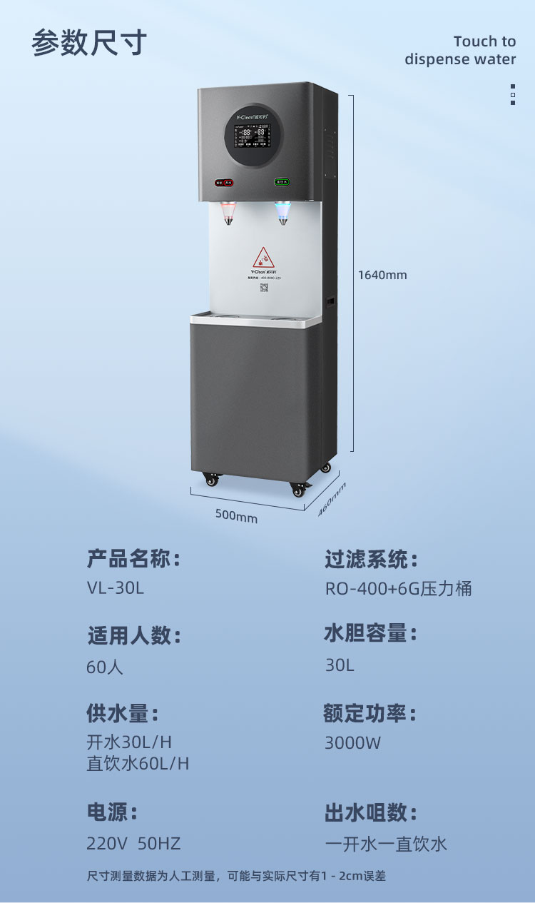 供水量:開水30L/H 直飲水60L/H